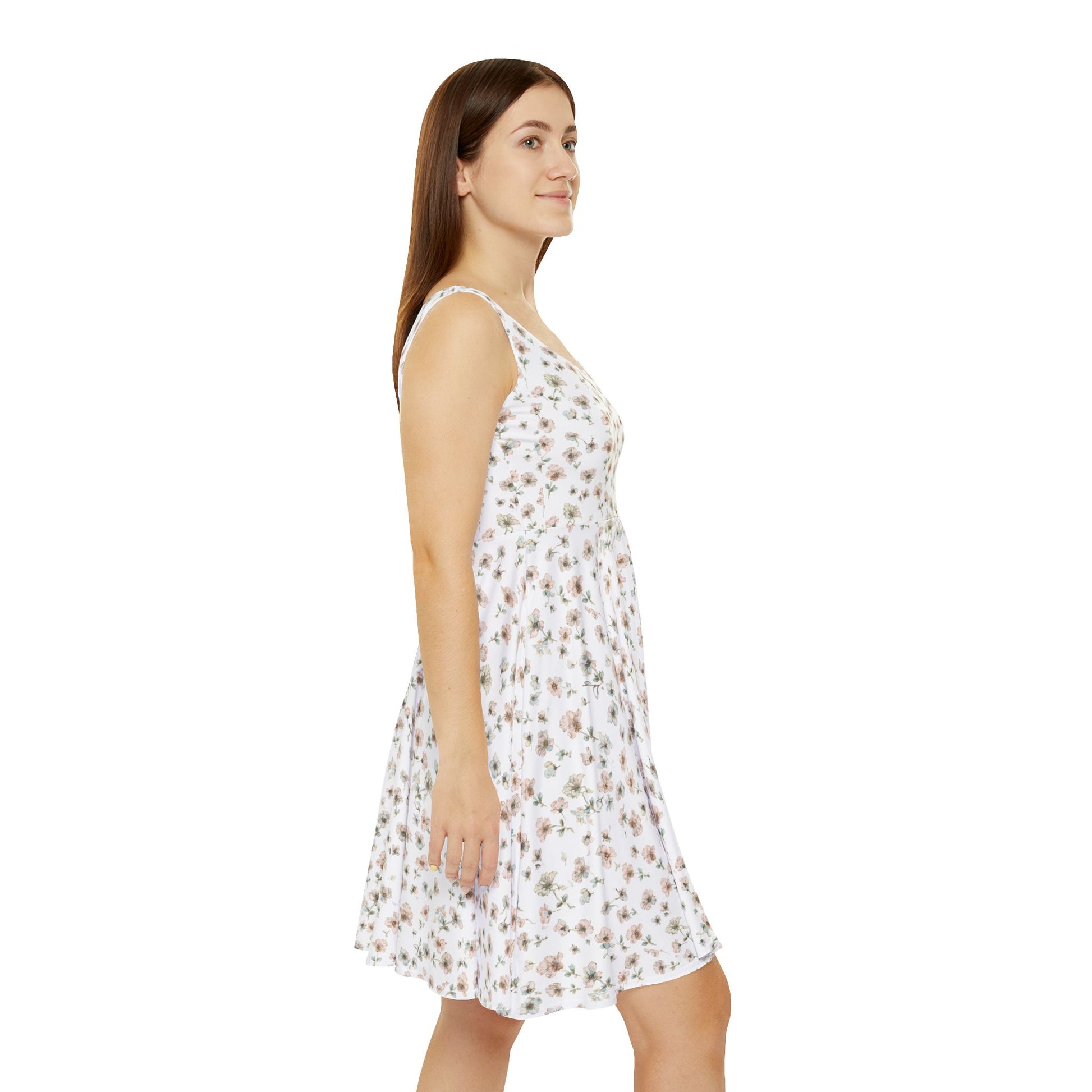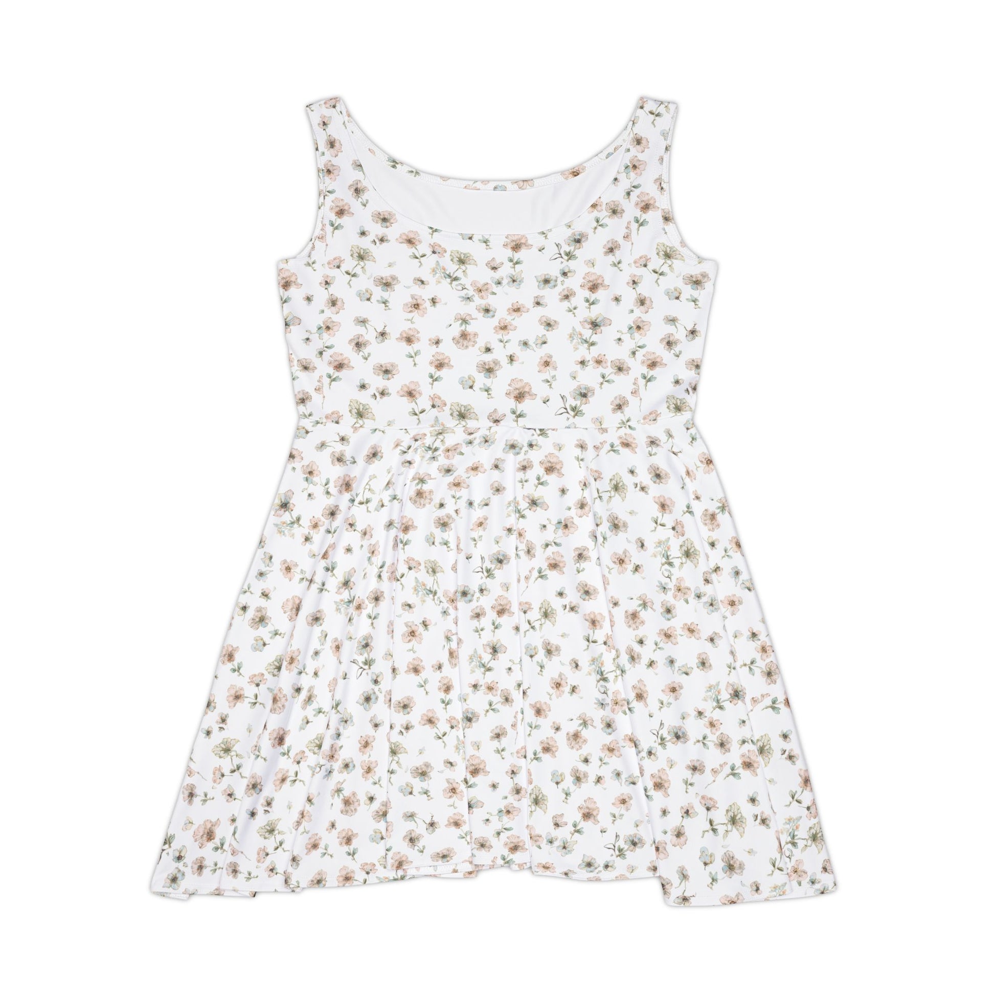 Floral Ditsy Skater Dress — White Summer Sundress with Small Wildflower Print